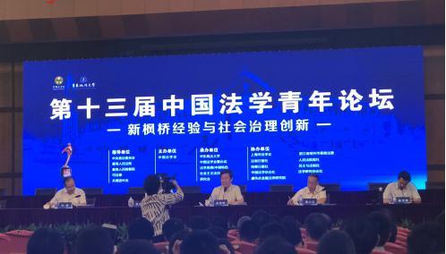 (通讯员:孙逸啸、许燕子)2018年7月8日,以“新枫桥经验与创新社会治理”为主题的第十三届中国法学青年论坛在华东政法大学举行。中国法学会长王乐泉,中国法学会党组书记陈冀平,中国法学会副会长鲍绍坤、张文显、王其江、徐显明、郎胜、朱孝清、任海泉等出席会议。王乐泉会长发表了重要讲话。上海市委常委、政法委书记陈寅,华东政法大学党委书记曹文泽,中央政法委副秘书长景汉朝分别致辞。