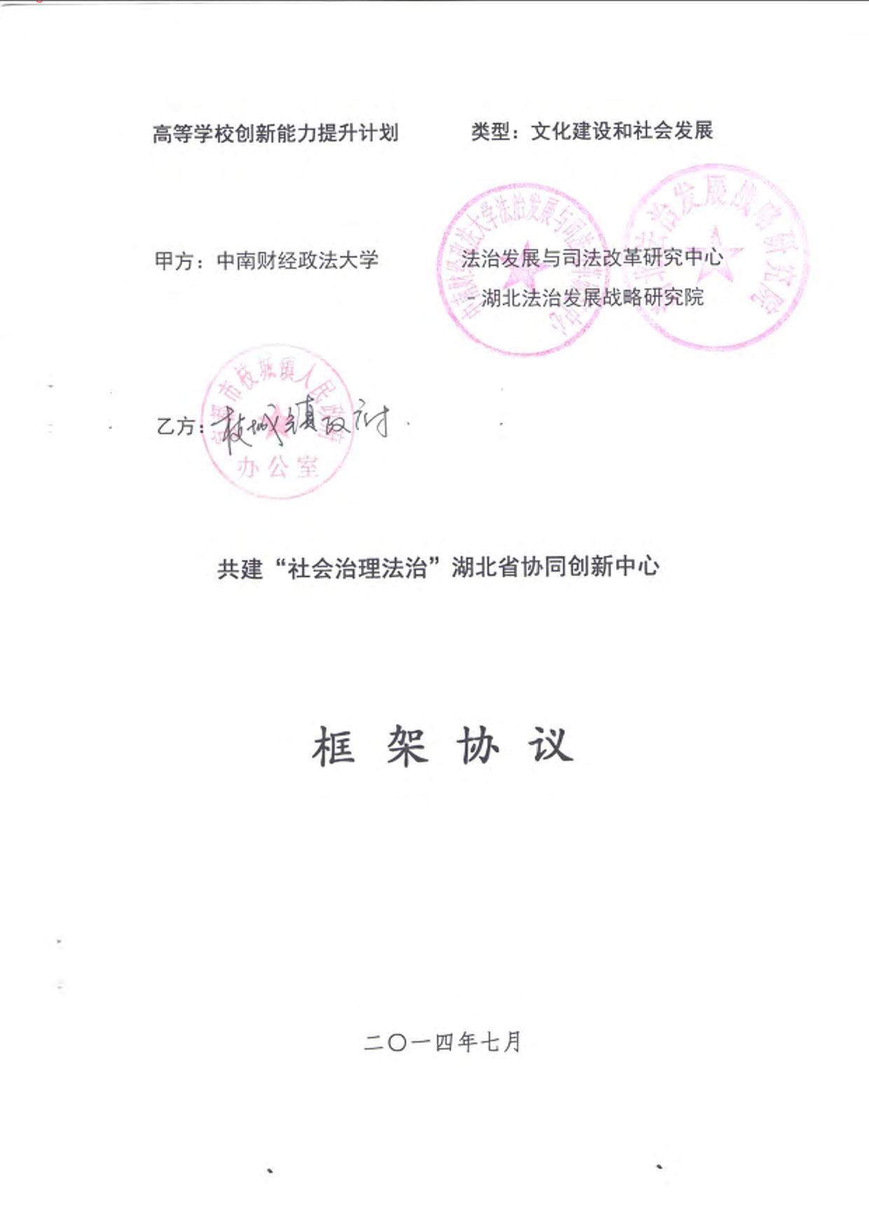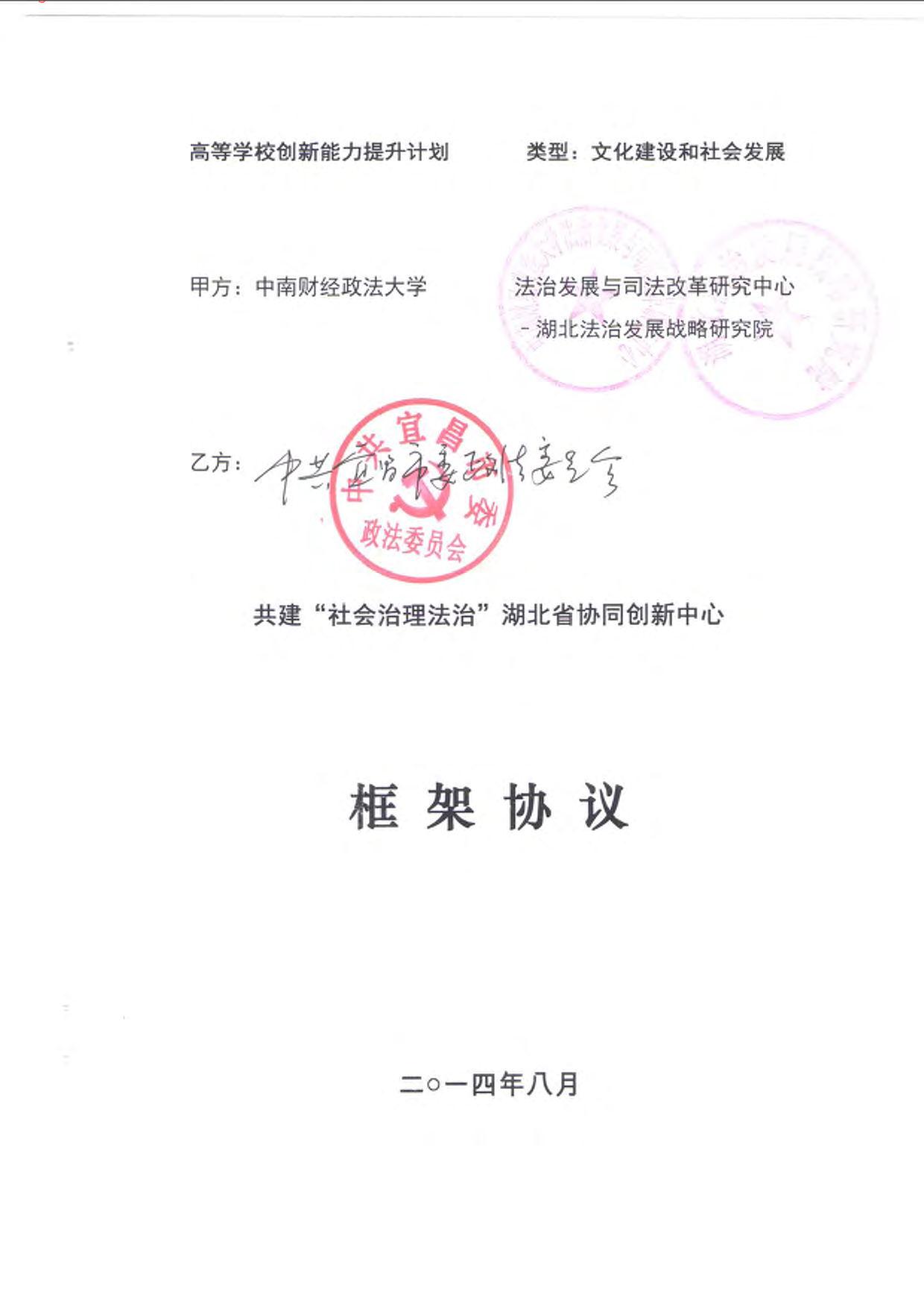 与宜昌市共建“社会治理法治”湖北省协同创新中心