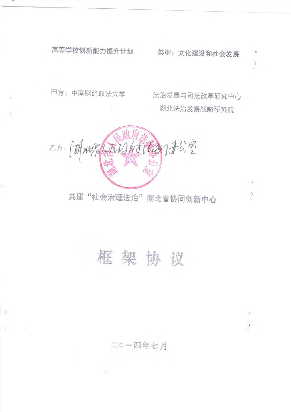与湖北省人民政府法制办共建“社会治理法治”湖北省协同创新中心