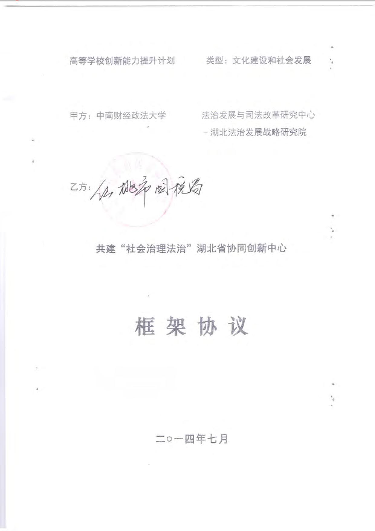 与仙桃市共建“社会治理法治”湖北省协同创新中心