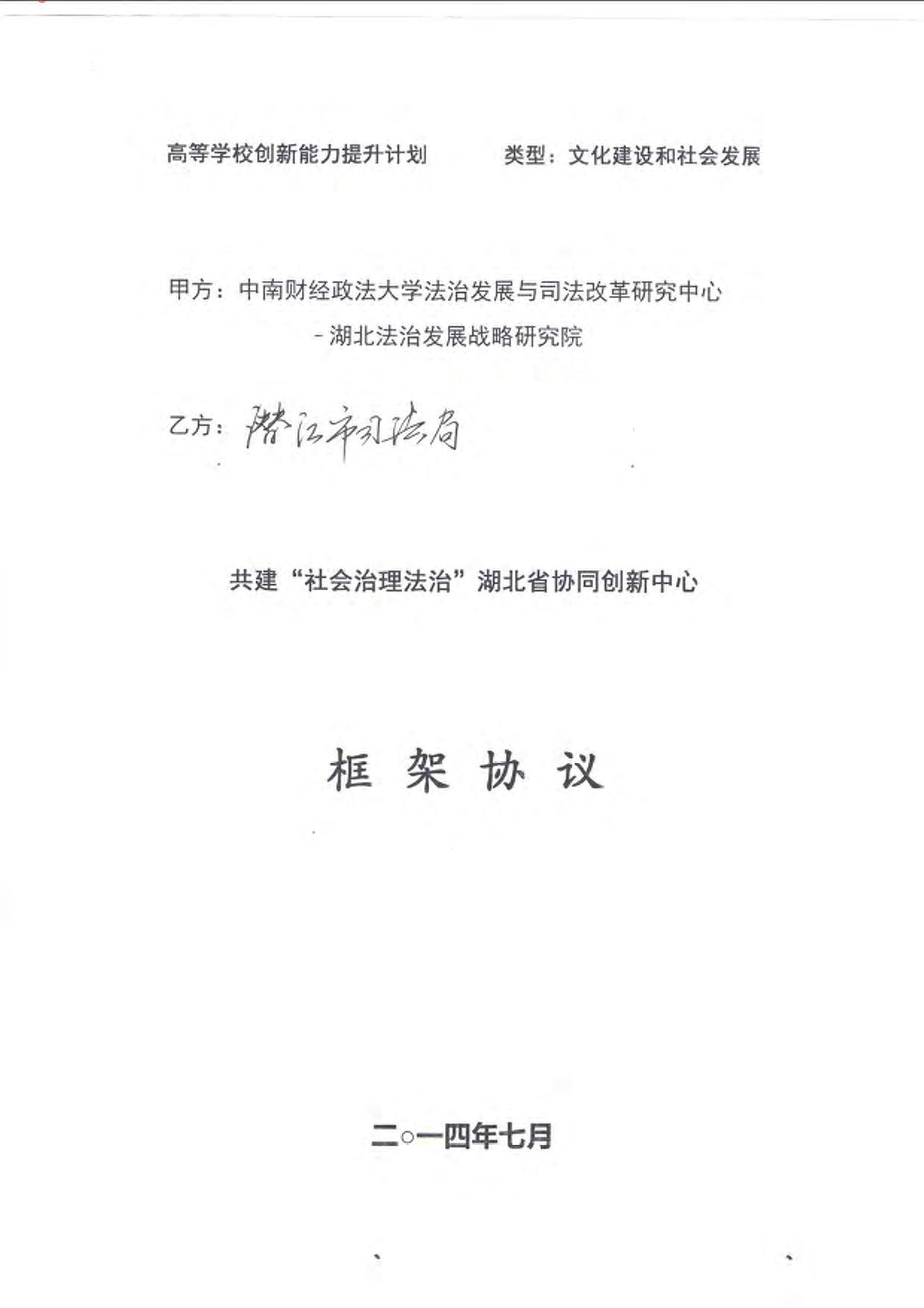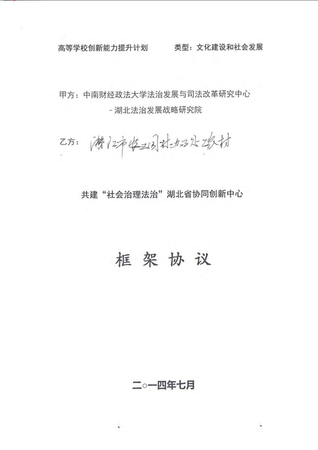 与潜江市共建“社会治理法治”湖北省协同创新中心