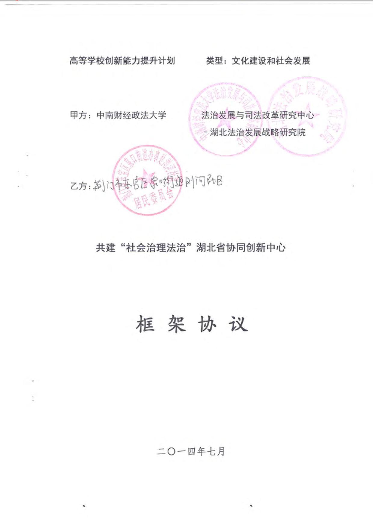 与荆门市共建“社会治理法治”湖北省协同创新中心