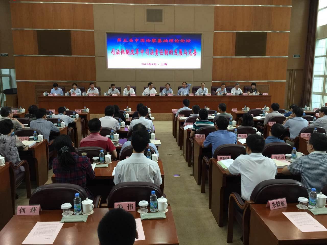 9月19日至20日,-第五届中国检察基础理论论坛-在上海举办,来自检察机关、高校法学界的近百名代表以-司法体制改革中司法责任制的健全与完善-为主题,围绕司法责任制的基础理论、具体运行和实现保障三个专题进行了集中研讨。中国检察学研究会检察基础理论专业委员会主任、湖北省检察院检察长敬大力在论坛开幕式上致辞;中国政法大学终身教授陈光中作主题报告。