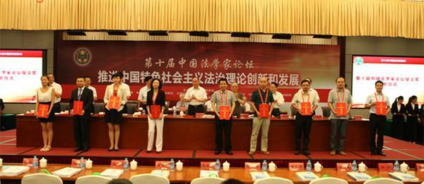 7月3日,中南财经政法大学法治与司法改革研究中心主任徐汉明教授出席第十届中国法学家论坛会议领奖并做专题演讲。中国法学会长王乐泉出席论坛并发表重要讲话,中国法学会党组书记、常务副会长陈冀平主持开幕式并作总结讲话。中国法学会副会长鲍绍坤、张文显、朱孝清分别主持各单元演讲。中国法学会副会长王其江、任海泉、江必新、孙谦、张苏军、吴志攀等出席论坛,来自全国的25名著名法学家登台发表主题演讲。