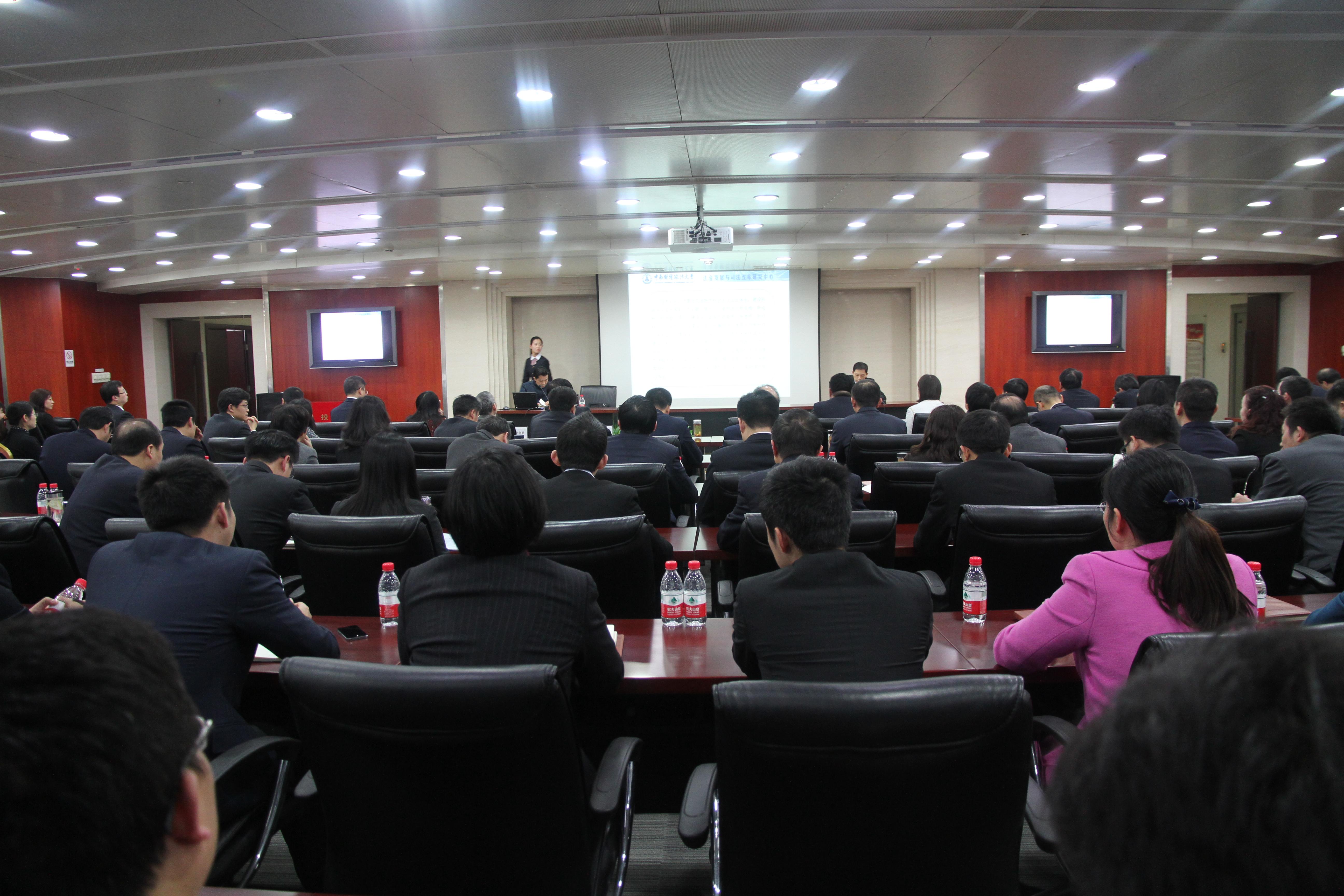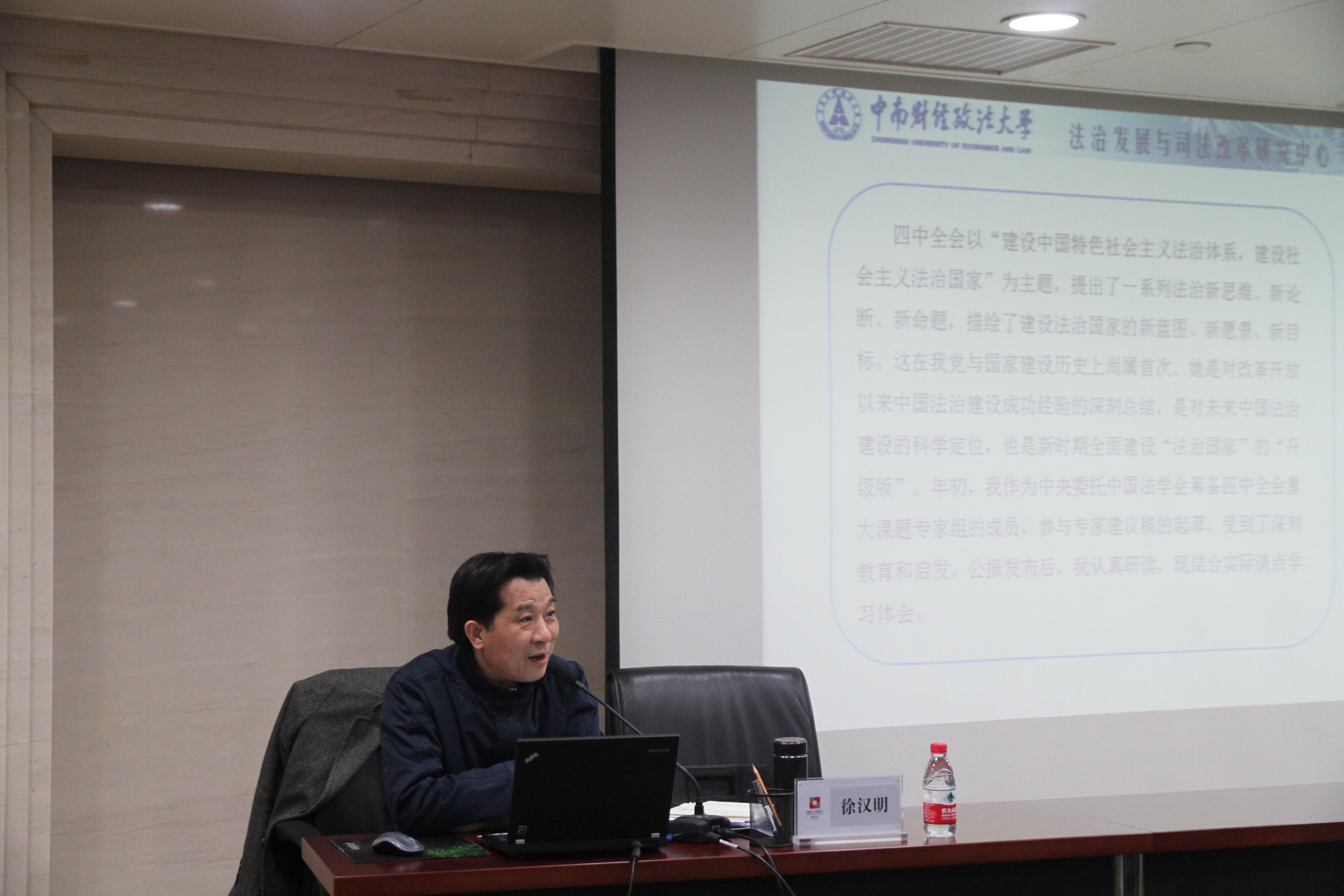 中南财经政法大学法治发展与司法改革研究中心主任、湖北法治发展战略研究院院长徐汉明教授在春节期间受国家开发银行湖北省分行邀请,前往该行作了题为《强化法治思维、提升领导干部法治能力》的讲演。本次学术报告会由国家开发银行湖北省分行党委书记钟钢主持。