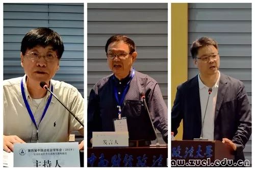 主会场部分,第一单元主题为“社会治理现代化与法治社会建构”,由华中师范大学法学院齐海滨教授主持。华东理工大学法学院教授、中国法社会学会副会长、上海市法哲学研究会长李瑜青首先发言。他在谈论社会自主性和和谐社会概念的基础上,深度挖掘法治建设在中国社会实现的可能性逻辑演绎以及其背后独特的文化意蕴。上海交通大学凯原法学院特聘教授、副院长程金华通过众多数据的回归分析及测量方法,围绕“法治社会的中间/中坚力量--2014至2018年间香港市民的司法正义观”这一问题,发表自己的看法,并总结出了四点关于阶级群体与法治的理论思考。中国海洋大学法学院副院长戴昕教授从中国社会信用体系建设的整体视角出发,探讨其多重制度逻辑的三个方面:“法治分散”、“德治集中”、“规制强化”。我校法治发展与司法改革研究中心讲师徐凯对中国经济转型、社会治理转型的现状进行考察之后,着重反思了其给法律带来的严峻挑战,并致力于给出理论回应。南京师范大学法学院理论法学专业博士研究生李飞以“在网格化社会治理推进法治社会建设”为题,发表自己的独特见解。评议环节,我院李长健教授用“大问题、大格局、高价值、好视角、好方法”概括肯定了上述报告的内容;厦门大学法学院郭春镇教授赞赏文章的同时也对更深入的研究提出期待;湖北民族大学法学院朱政副教授主要就发言论文存在的不足问题提出了个人的看法和补充说明。