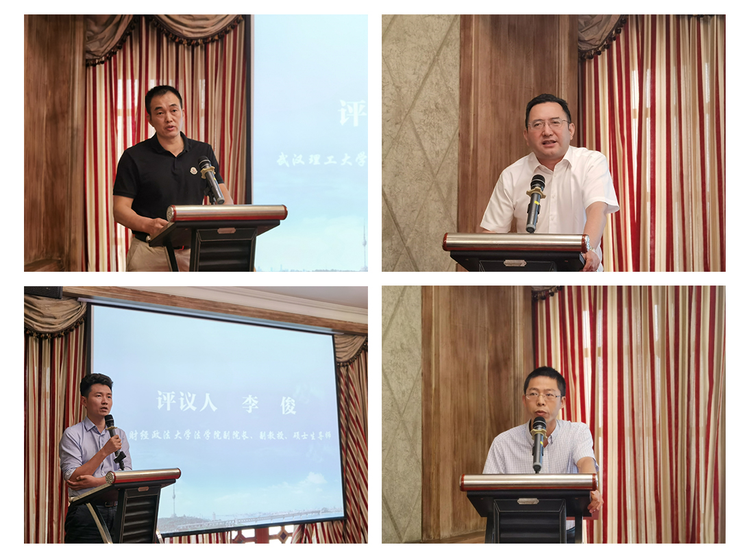 武汉理工大学法学社会学院院长、教授、博士生导师李牧,华中师范大学法学院副院长、教授、博士生导师丁文,中南财经政法大学法学院副院长、副教授、硕士生导师李俊,武汉大学国家文化研究院副研究员,法学博士戢浩飞到会听取博士们的发言后作现场点评。