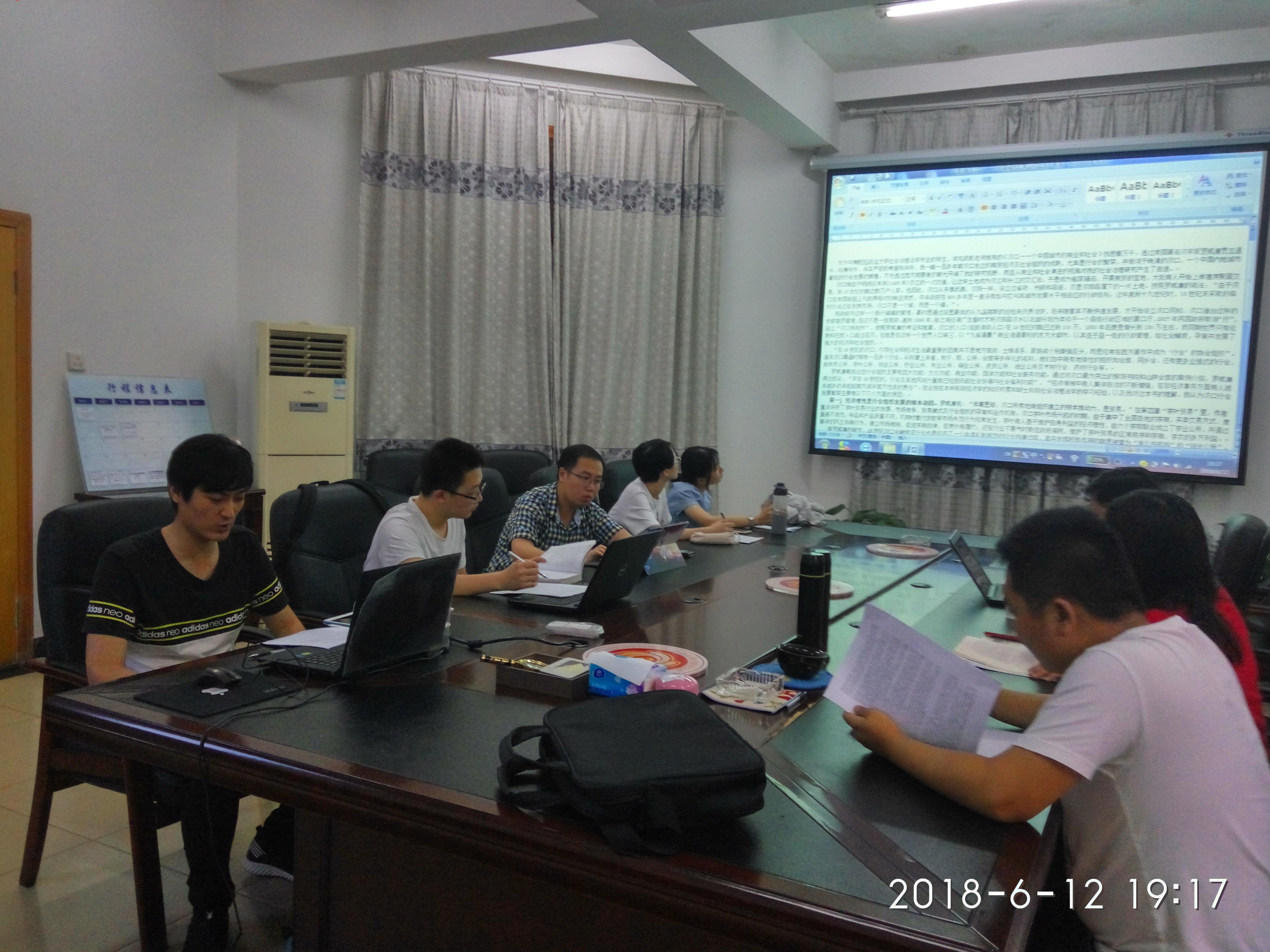 2018年6月12日晚,由法治发展与司法改革研究中心教学培训部组织的读书会在研究院会议室举行。武乾教授、教培部老师以及社会治理法学专业2016级与2017级研究生同学参加了本次读书会。读书会所讨论的书目为《汉口:一个中国城市的商业与社会(1796-1889)》。