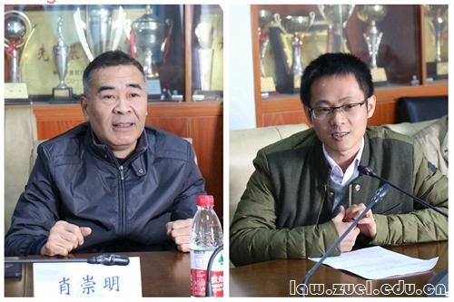 肖崇明书记对石河子大学一行表示热烈欢迎,真诚地希望两校建立多方面的合作,并预祝本次访问圆满成功。陈柏峰副院长指出,石河子大学政法学院一直与我院有着紧密的联系,建立了深厚的友谊。并就人才输送,教学培养等方面相互借鉴,取得了卓有成效的成绩。