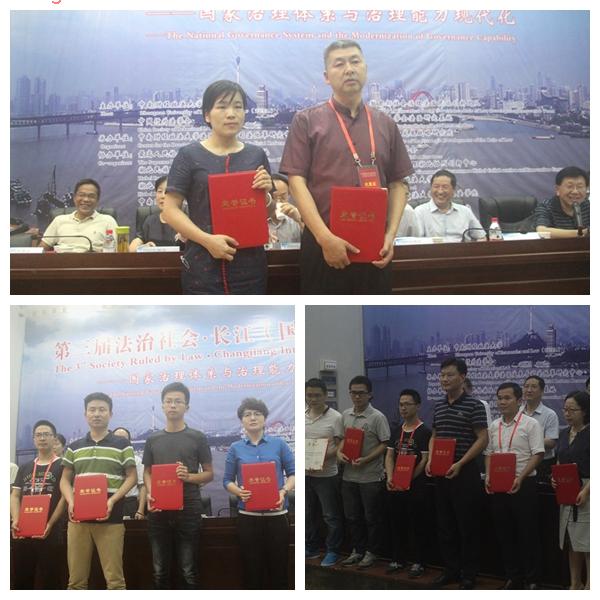 第三届-法治社会·长江(国际)论坛-国家治理体系与治理能力现代化-闭幕式由中南民族大学原党委副书记徐柏才教授主持。中南财经政法大学党委副书记齐文远教授公布了本次论坛所收论文的评选结果:本次论坛共收到论文118篇,录用论文107篇。按照征稿启事约定,参选论文分别划分到四个专题进行评审。奖项按四个专题设置:每个专题设一等奖1篇、二等奖2篇、三等奖3篇、优秀奖4篇。经专家评审委员会组织初评、定评,最终确定40篇论文获奖。其中一等奖4篇、二等奖8篇、三等奖12篇、优秀奖16篇。出席论坛闭幕式的领导和嘉宾代表分别给获奖作者颁奖。