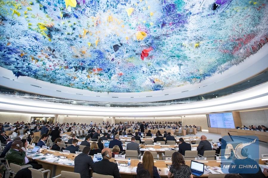 Delegates hold a general debate on the report of Syria during the 33rd session of the Human Rights Council (HRC) in Geneva, Switzerland, Sept. 19, 2016. (Xinhua/Xu Jinquan)