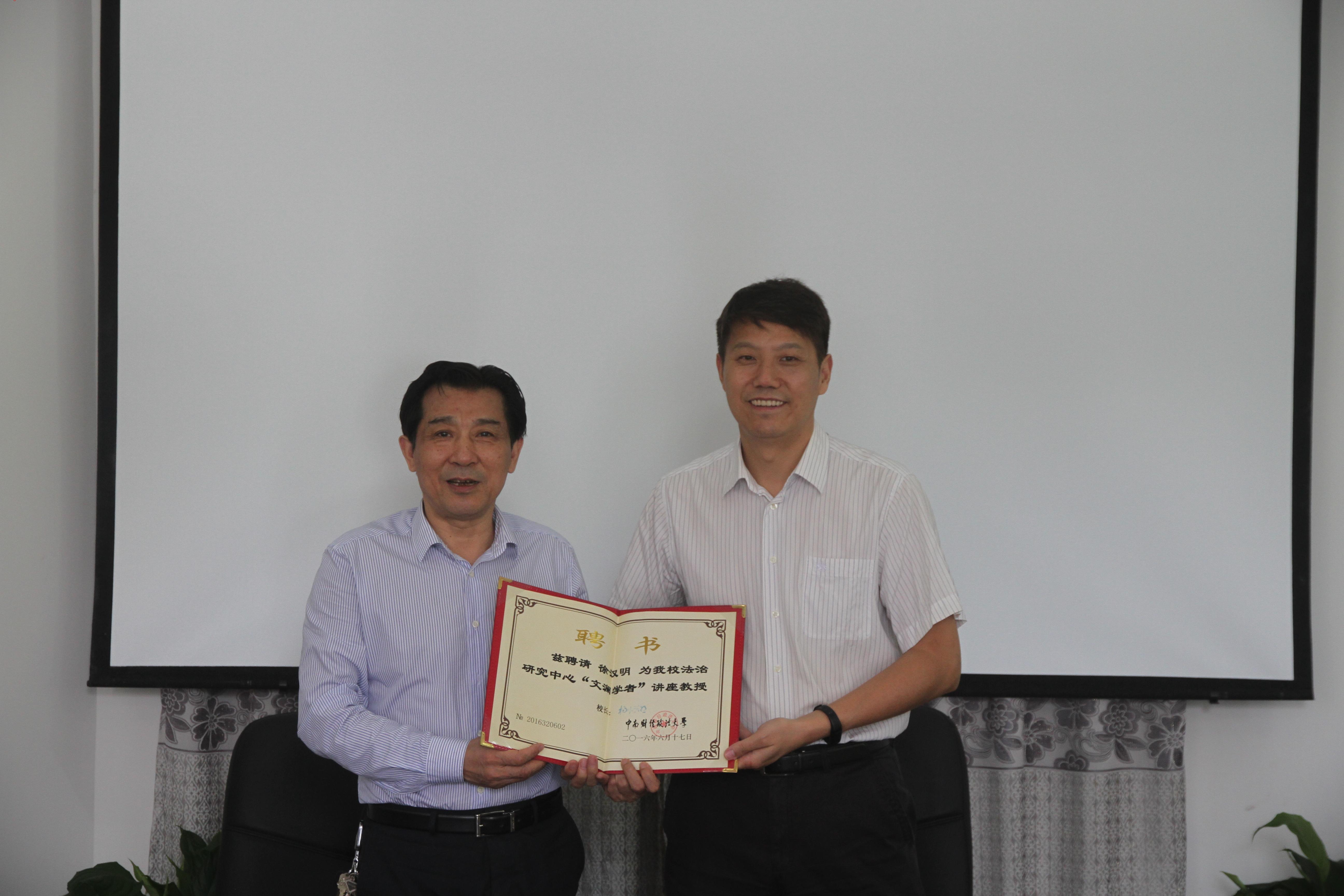 徐汉明教授被中南财经政法大学聘为法治研究中心“文澜学者”讲座教授