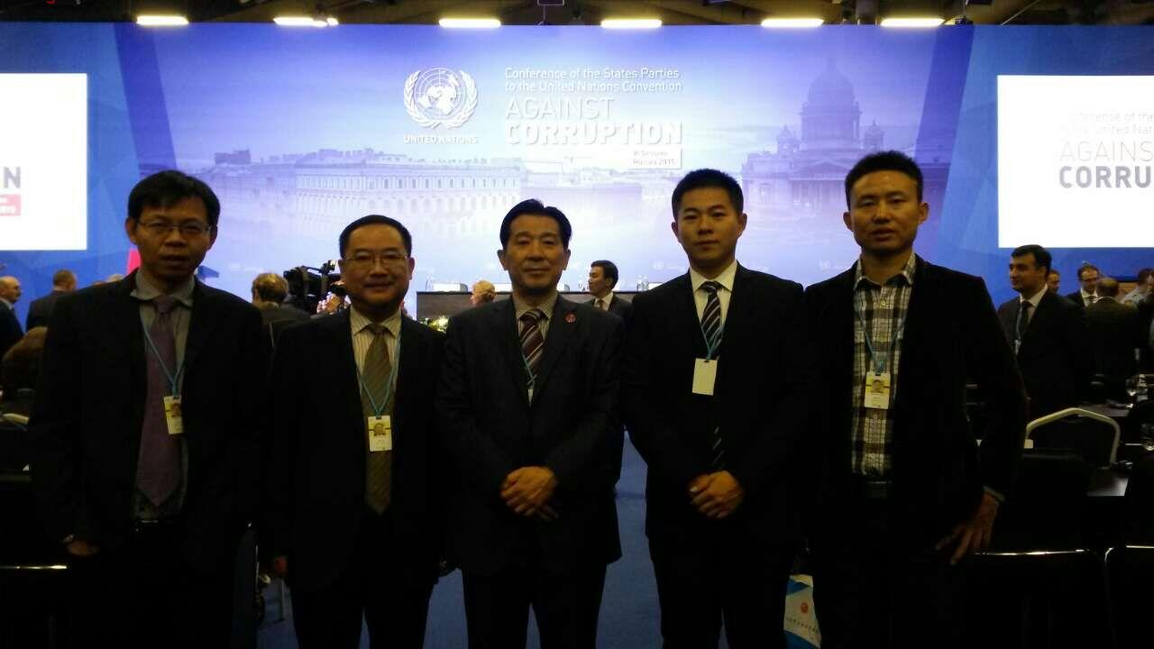 (本网讯 通讯员 曾海涛)《联合国反腐败公约》第六届缔约国会议于11月2日至6日在俄罗斯圣彼得堡举行。中南财经政法大学法治发展与司法改革研究中心主任、湖北法治发展战略研究院院长徐汉明教授率领中南财经政法大学刑事司法学院董少平教授,中南财经政法大学博士生李少波、张新平一行4人出席会议。会议共有160多个国家以及10多个国际组织的代表参加。