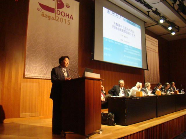 (通讯员 方金海 曾海涛)2015年4月16日,第13届联合国预防犯罪和刑事司法大会“互联网金融与犯罪预防”专题报告会在卡塔尔国家会议中心2号礼堂举行。中南财经政法大学代表团团长、法治发展与司法改革研究中心主任暨湖北法治发展战略研究院院长、中国法学会法治研究基地负责人徐汉明教授出席会议,并围绕“大数据时代惩治与预防网络金融犯罪”作主题发言。报告会由国际反贪局联合会副主席、联合国毒品与犯罪署条约司前司长埃德瓦多·维特博士主持,联合国反贪局联合会秘书长叶峰博士,国际检察官联合会执行委员会委员、阿塞拜疆副总检察长卡梅伦.阿利耶夫,北京师范大学资深教授高铭暄, 阿根廷最高法院法官佩德罗.狄伟德等近50名国际司法官员和专家学者参加了此次报告会。