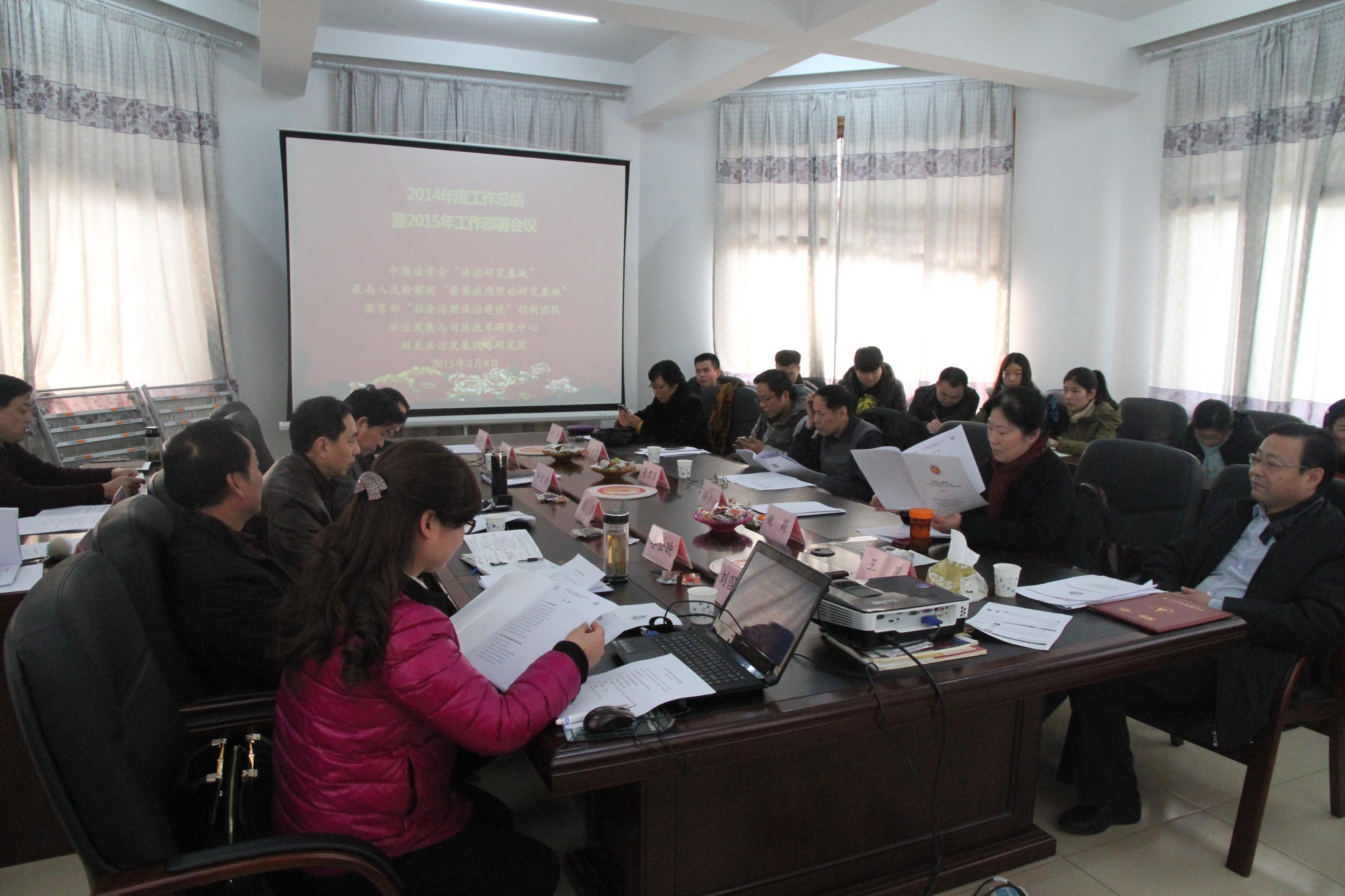 (通讯员 曾海涛)昨日下午,中南财经政法大学法治发展与司法改革研究中心暨湖北法治发展战略研究院(以下简称“中心-研究院”)2014年度工作总结及2015年度工作部署会议在中心-研究院二楼会议室顺利召开。