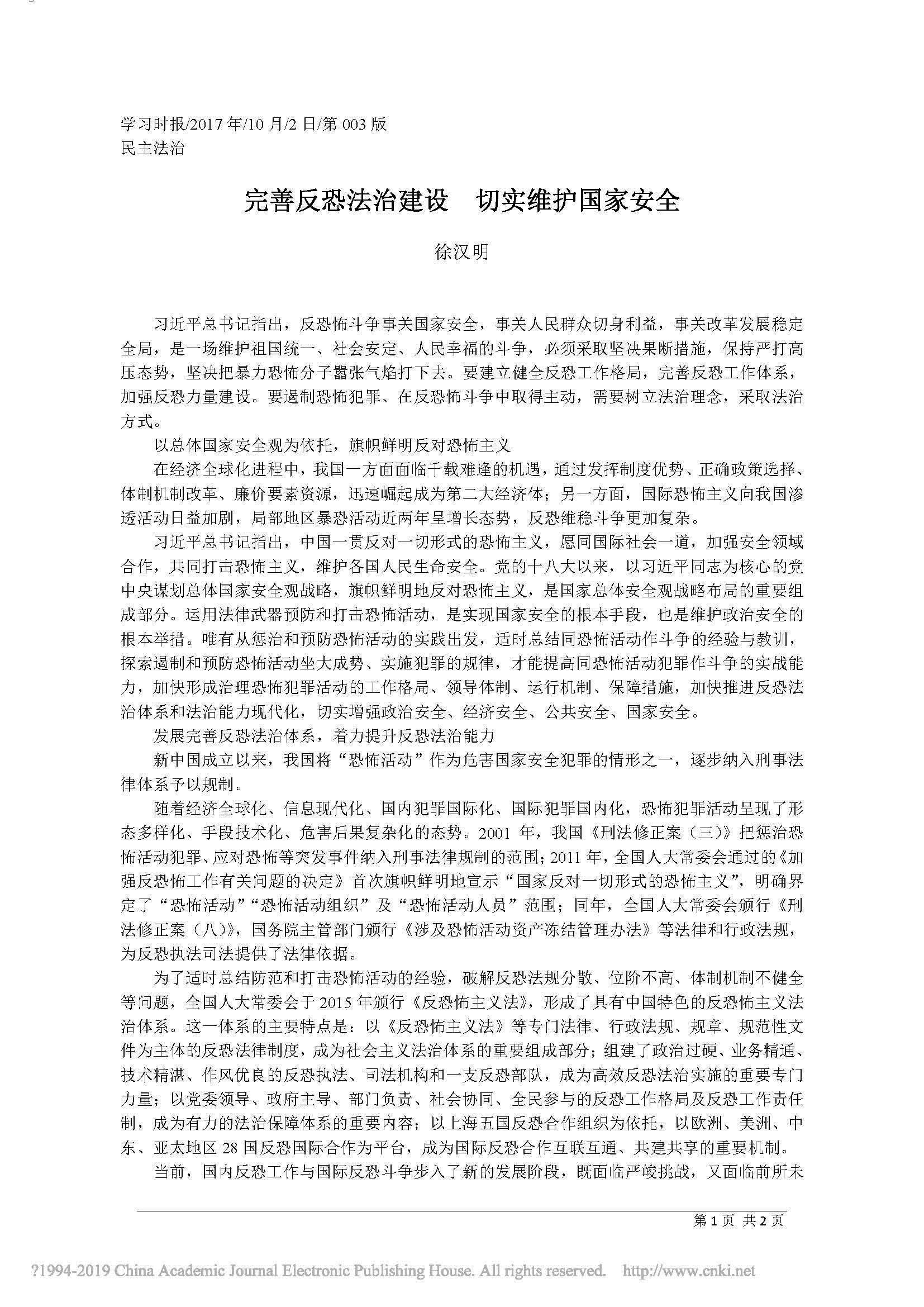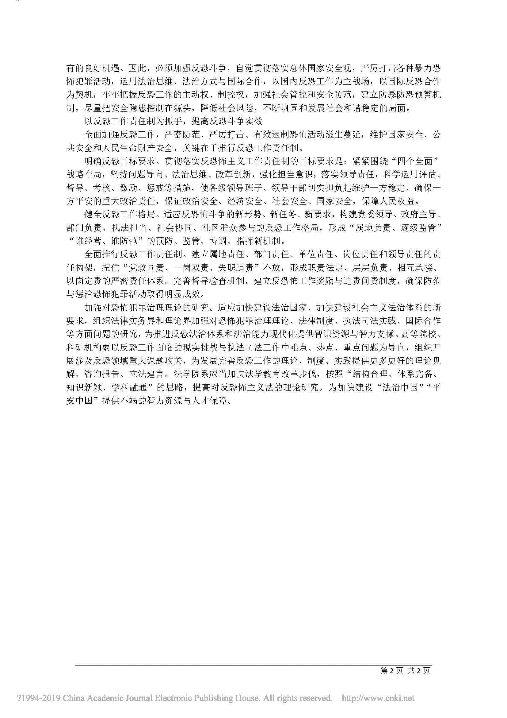 完善反恐法治建设 切实维护国家安全