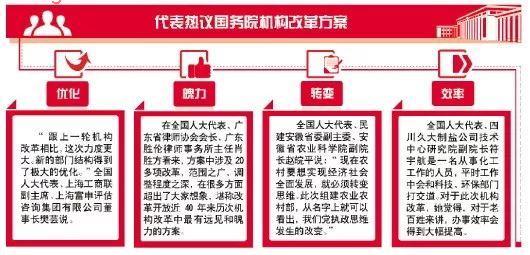 代表们认为,此次机构改革回应了发展所需、基层所盼、民心所向,以人民是否满意作为衡量服务型政府建设成效的标准与信念,写在了改革方案的字里行间。