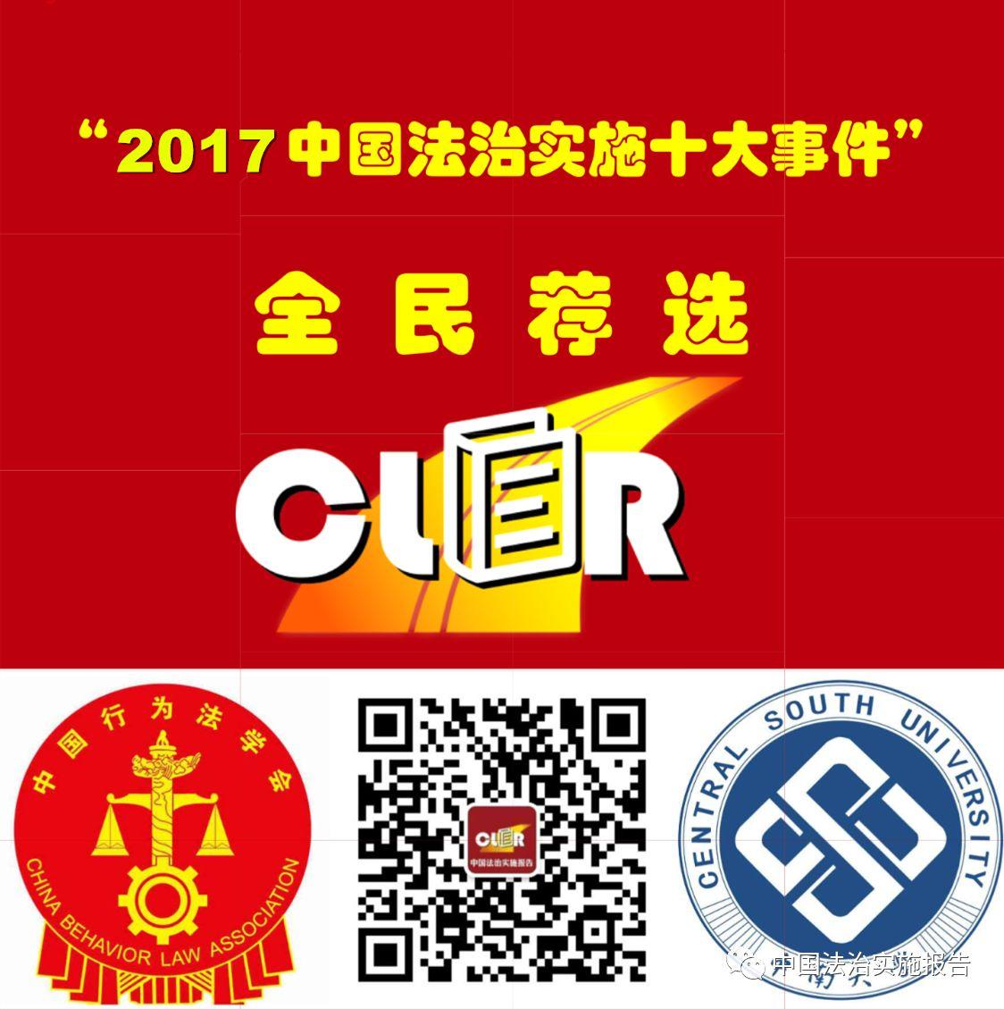 “2017中国法治实施十大事件”全民荐选活动由中国行为法学会和中南大学联合主办,迄今已连续四年。活动采取公众投票+专家推荐相结合,共同发掘上一年度最具里程碑意义的中国法治实施议题。