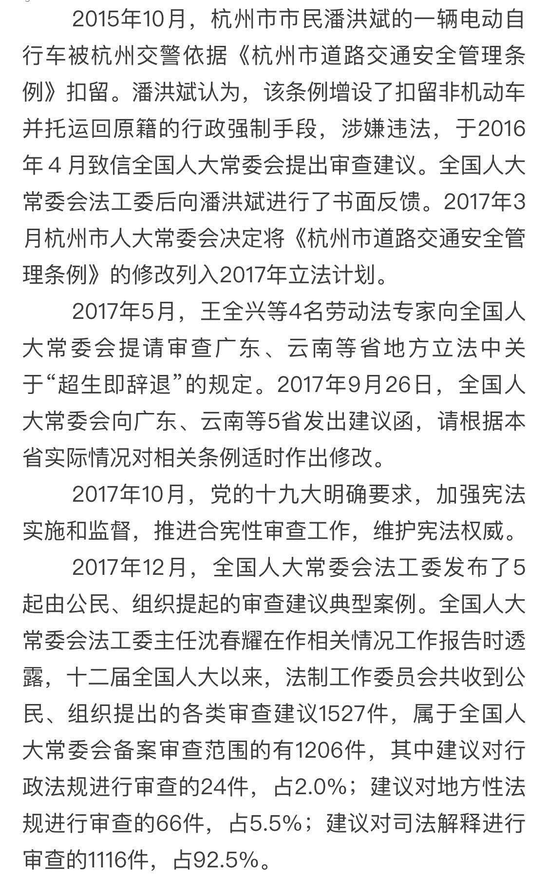 1.潘洪斌等就有关规范性文件提请全国人大常委会审查