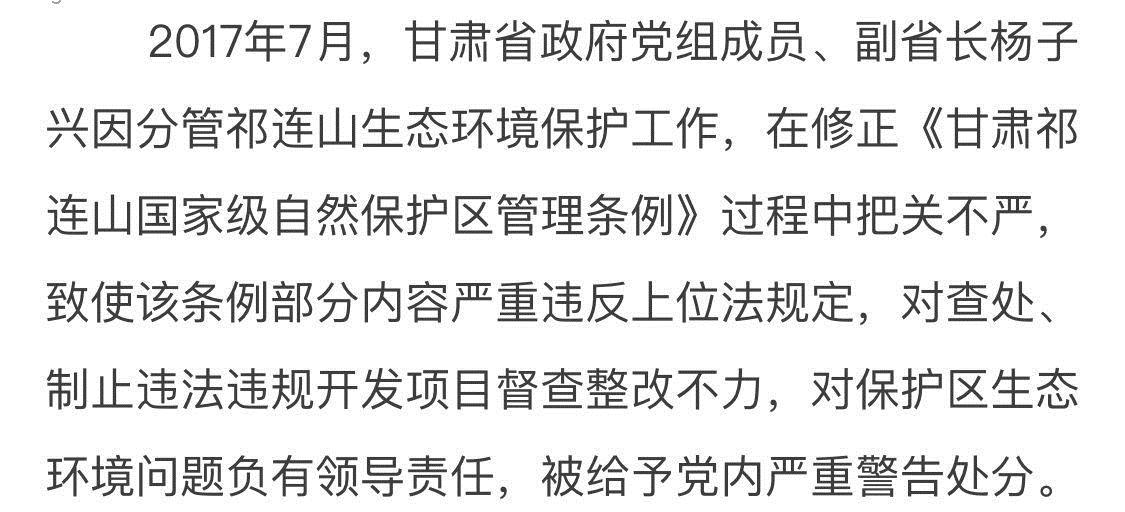 4.甘肃省自然保护区管理条例违法副省长杨子兴被问责