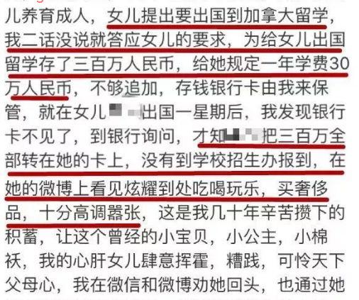痛斥女儿将自己为她存的300万积蓄(包括学费)