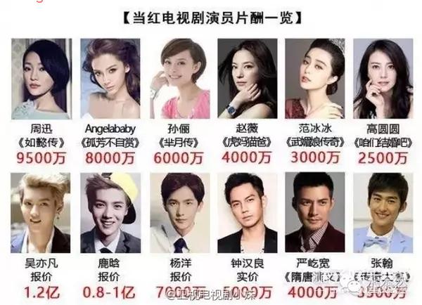 作品内容、制作水准的讨论。在网络流传的现今当红演员片酬中,最低的2500万,