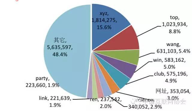 图1-5:截至2015年12月底“.wang”、“.ren”等新通用顶级域占比情况