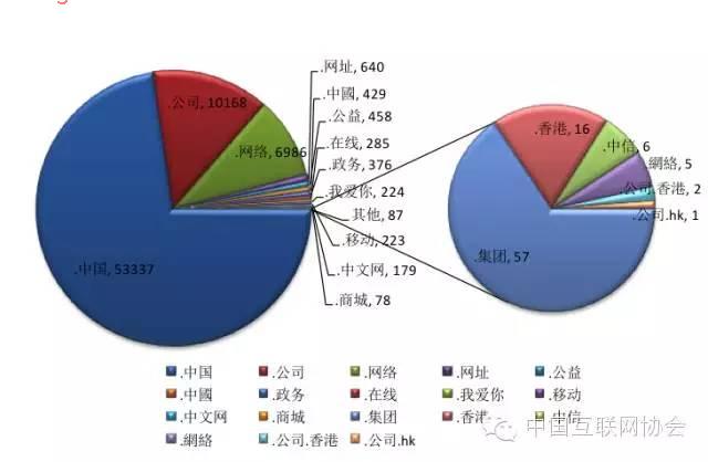 在使用上,截至2015年12月底,“.中国”、“.公司”、“.网络”、“.商城”等24类中文顶级域在备案系统中备案的域名总数达到7.3万余个,具体情况如图1-4所示。