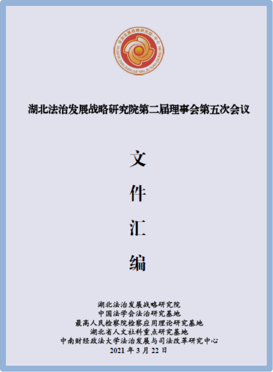本次会议通过微信及邮件的形式,向各位理事、委员报送了中南财经政法大学法治发展与司法改革研究中心主任暨湖北法治发展战略研究院理事长徐汉明教授所做的题为“坚定政治方向 聚智抗击疫情 积极服务法治社会建设高端决策”2020年度工作报告,以及“2021年度重点工作及责任分工”和“2020 年度科研成果统计”等文件汇编。