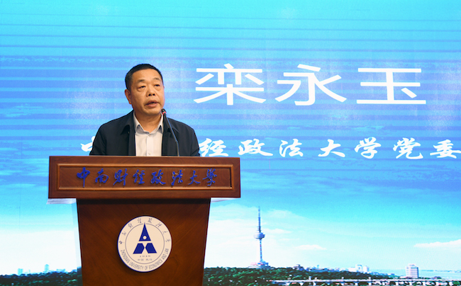 栾永玉教授以《着力培养高质量人才 助推中国式法治现代化》为题作精彩开幕致辞。他说,刚刚挂牌成立的国家治理学院,是应承中国式法治现代化之使命而生,中南财经政法大学专家学者以及经法管各学科同仁都有责任将我校率先打造的社会治理法学、公安学、法庭科学、国家安全学、纪检监察学、党内法规学等新兴学科、交叉学科与传统学科改造升级的“中南故事”宣讲好诠释好。他指出,本届论坛围绕“习近平法治思想领航中国式法治现代化”展开研讨,这是青年博士学习践行习近平法治思想的标志性成果,也是青年博士群体为中国式法治现代化贡献智慧理论自觉和行动自觉的体现,意义重大。在诠释中国式现代化与中国式法治现代化的基本内涵、本质要求、总体特征、时代价值及其世界意义的基础上,栾永玉书记从自觉践行习近平国民教育九论系列经典观点、习近平法治思想中的中国法学标志性概念提炼、创新法治人才培养机制、为党和国家培养大批卓越法治人才高度提出了“四点建议”,强调以习近平法治思想领航中国法学三大体系构建,优化人才培养体系;深化学校教育改革,增强经法管学科融通合力;持续塑造富有学校特色的法治文化;引导青年学子积极主动投身中国式法治现代化实践。