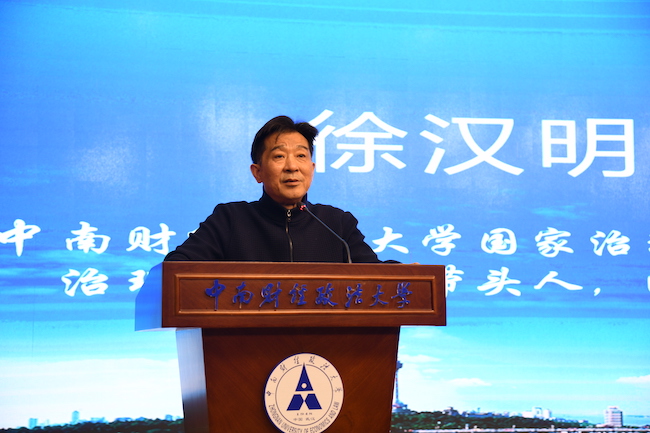 本次论坛由最近成立的中南财经政法大学国家治理学院主办。中南财经政法大学党委书记栾永玉教授、中南财经政法大学法学院兼国家治理学院院长陈柏峰教授出席并分别作开幕致辞。中南财经政法大学国家治理学院教授、博士研究生导师、社会治理法学学科带头人、湖北法治发展战略研究院院长徐汉明教授作论坛总结。中南财经政法大学法学院教授、博士研究生导师、中国法学会行政法研究会副会长方世荣教授,中南财经政法大学法治评估中心主任、博士研究生导师张德淼教授,中南民族大学法学院院长、博士研究生导师潘红祥教授作专家点评。